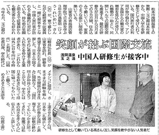 ※平成22年11月20日(土)松本市民タイムス掲載(受入企業:浅間温泉玉之湯)